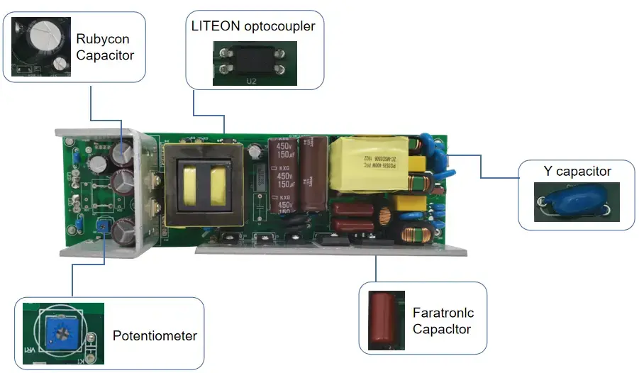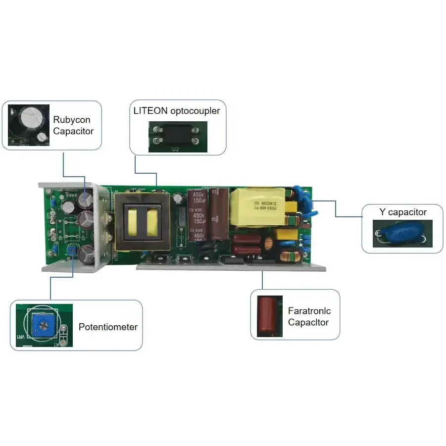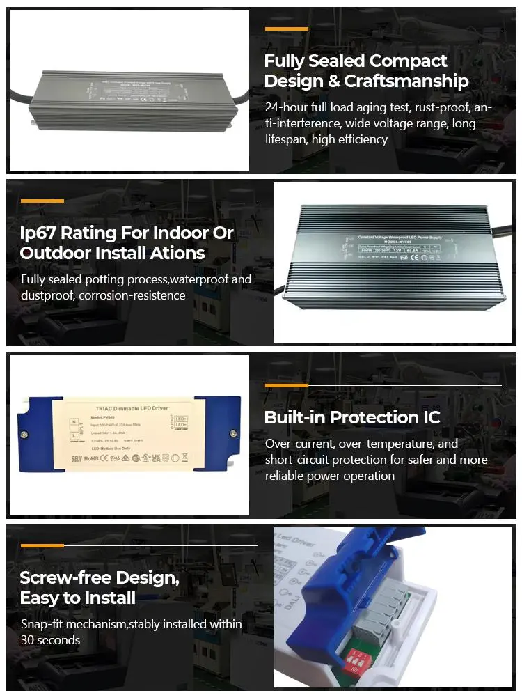กระแสไฟคงที่ที่แม่นยำ · ความทนทานยาวนาน: ไดรเวอร์ LED แบบหรี่แสงได้แบบ triac ของ STARWELL ใช้ชิปกระแสไฟคงที่ที่มีความแม่นยำสูง ข้อผิดพลาดของกระแสไฟขาออกคือ ≤ ±3% กระแสไฟขาออกคงที่ที่ 1200mA และความลึกของการสั่นไหวคือ <5% ซึ่งช่วยขจัดปัญหาการกะพริบและการลดทอนของแสง สามารถยืดอายุการใช้งานของโคมไฟ LED ได้มากกว่า 30% และอายุการใช้งานต่อเนื่องยาวนานถึง 50,000 ชั่วโมง จึงช่วยลดต้นทุนในการเปลี่ยนและบำรุงรักษาได้อย่างมาก