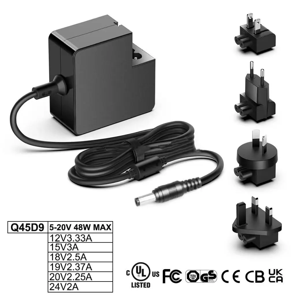 12V/3.33A, 15V/3A, 18V/2.5A, 19V/2.37A, 19V/2.53A, 20V/2.25A, 24V/2A |