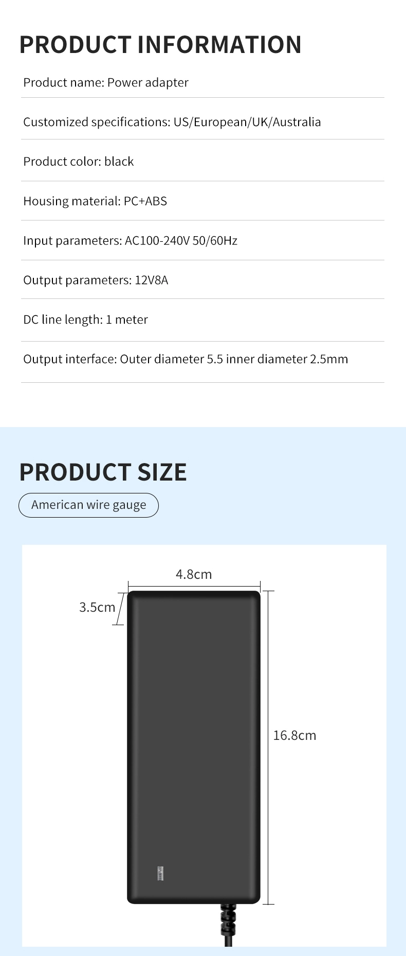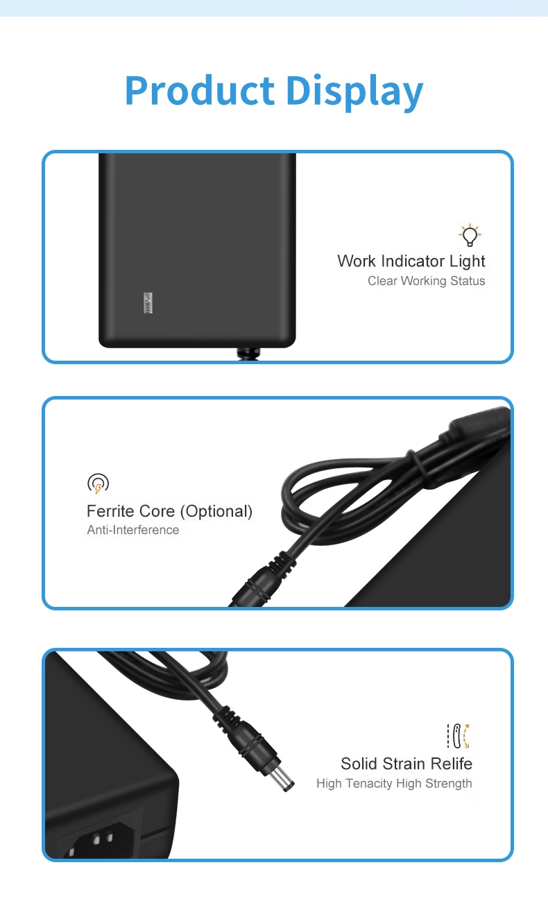 ด้วยกำลังไฟพิกัด 96W กระแสไฟเอาท์พุตของอะแดปเตอร์แปลงไฟ 96W จะคงที่ที่จุดสูงสุดที่ 8A และความแม่นยำของแรงดันไฟฟ้าจะถูกควบคุมภายใน±5% (แรงดันไฟฟ้าขณะไม่มีโหลด: 12.1V แรงดันไฟฟ้าเต็มโหลด: 11.8V) สามารถตอบสนองความต้องการแหล่งจ่ายไฟพร้อมกันของอุปกรณ์หลายตัว (เช่น อุปกรณ์ 48W แบบขนาน 2 เครื่อง) สายเคเบิลเอาต์พุตแกนทองแดงบริสุทธิ์รับประกันแรงดันไฟฟ้าตกที่ ≤0.3V โดยคงประสิทธิภาพไว้โดยไม่ลดทอนในระหว่างการส่งกระแสสูง