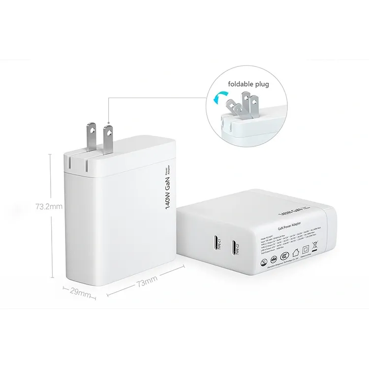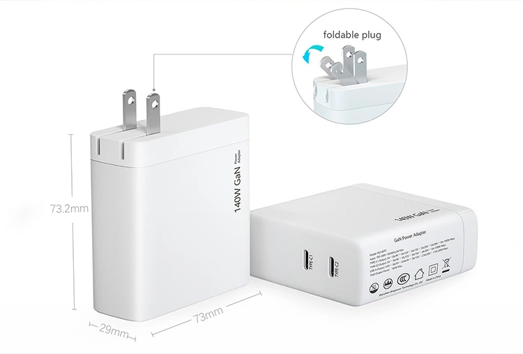 พอร์ต usb c คู่ 140W PD Charger ปลั๊ก US พับได้