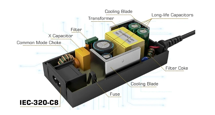 ข้อมูลจำเพาะอะแดปเตอร์ AC-DC เดสก์ท็อป 150W ดังต่อไปนี้: