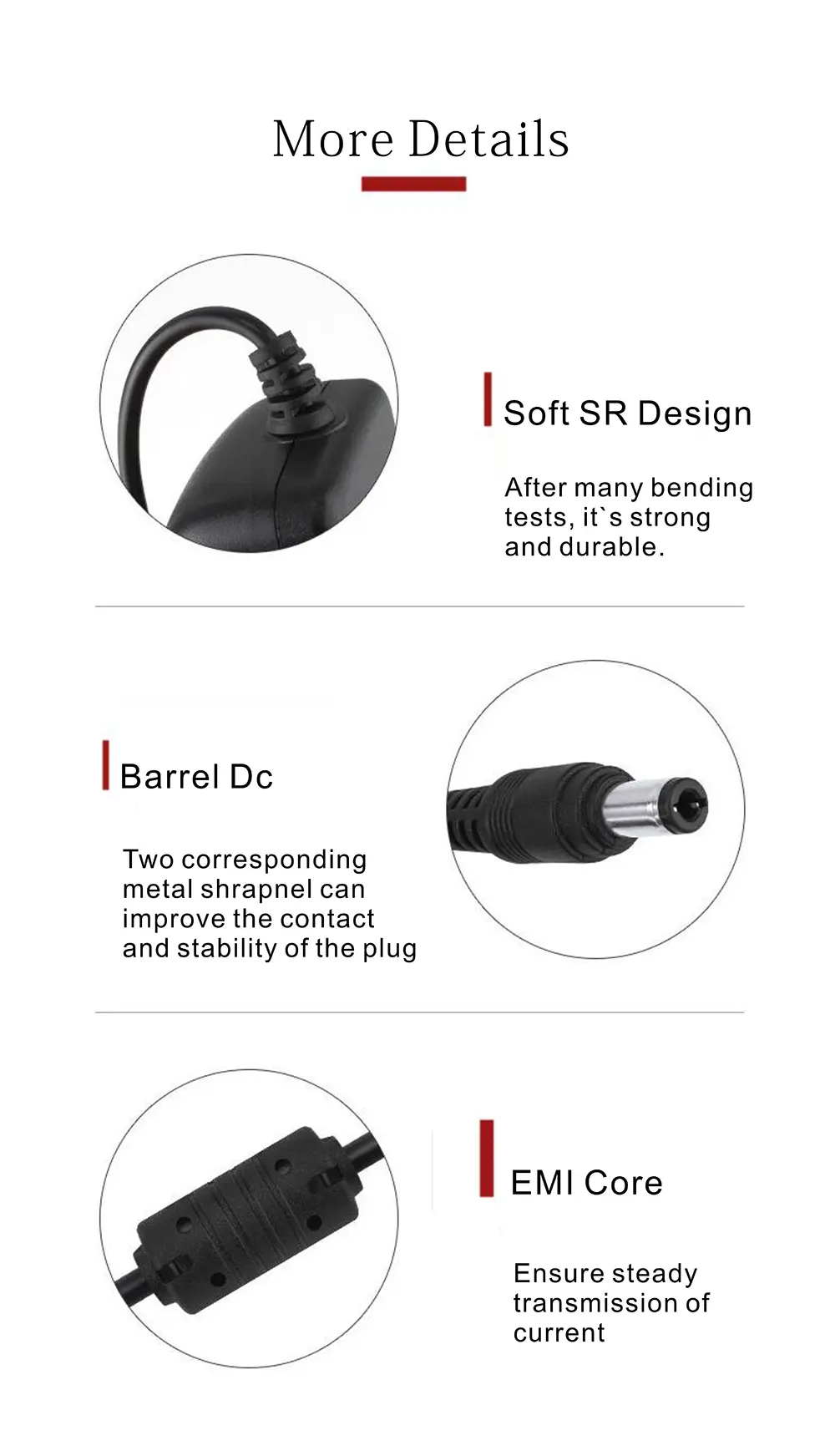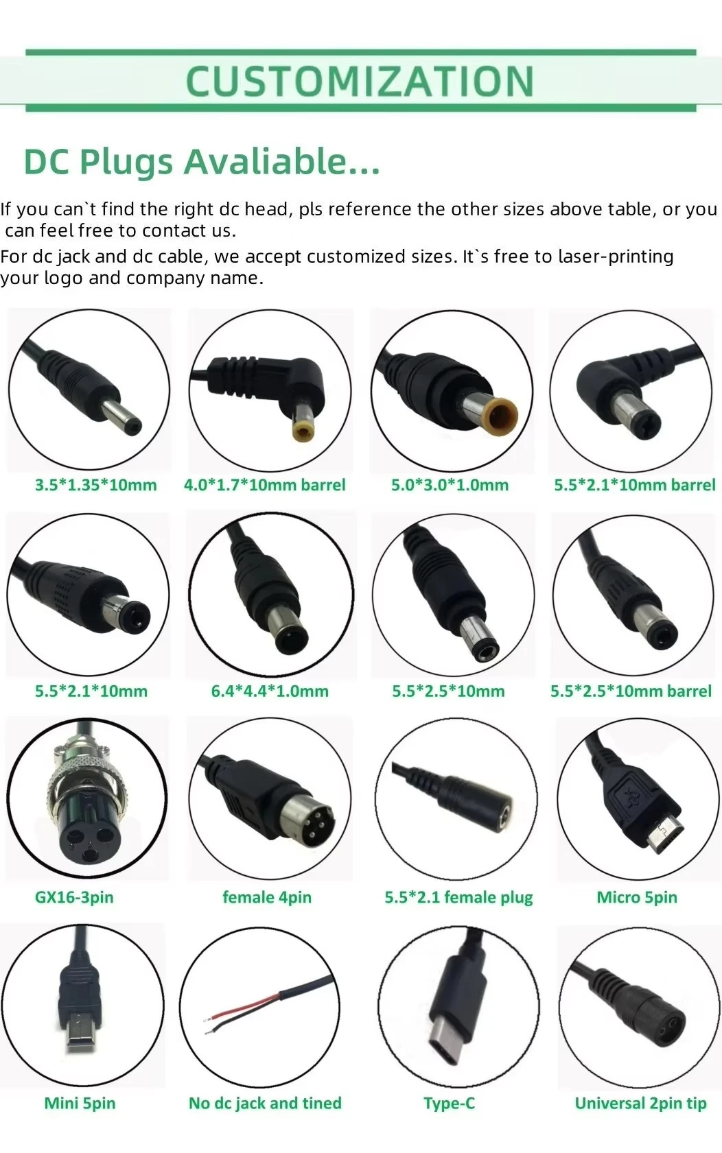 3. ขั้วต่อที่พอดี: ยืนยันว่าขนาดของปลั๊ก (เช่น 5.5 มม. x 2.1 มม.) และขั้ว (มักจะเป็นขั้วบวกตรงกลาง) ตรงกับแจ็ค DC ของอุปกรณ์ ความไม่ตรงกันอาจทำให้เกิดความเสียหายได้