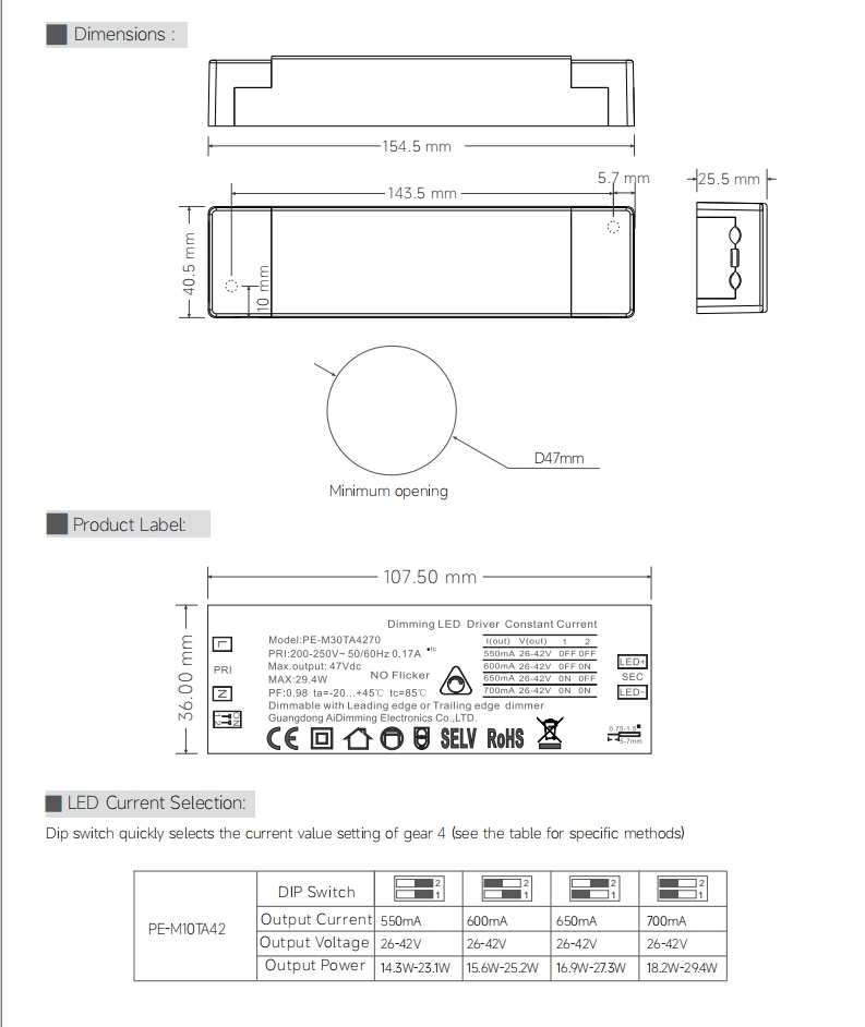 ไดร์เวอร์ LED ลดแสง TRIAC คงที่ในปัจจุบัน 30W |