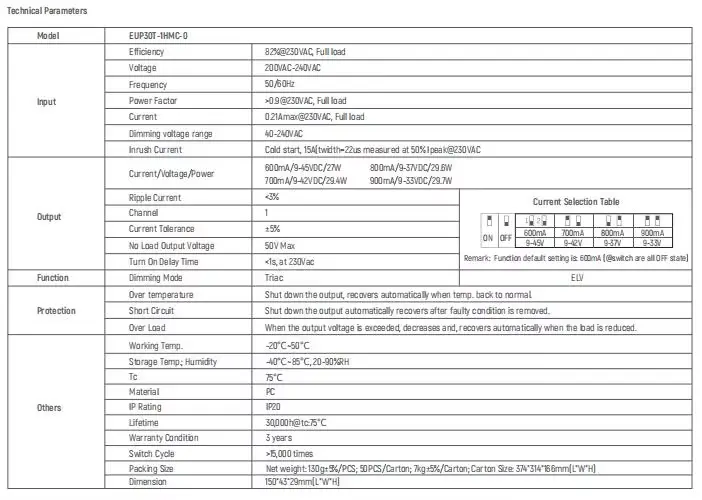 ไดร์เวอร์ LED Triac Dimmable ปัจจุบันคงที่ 30W