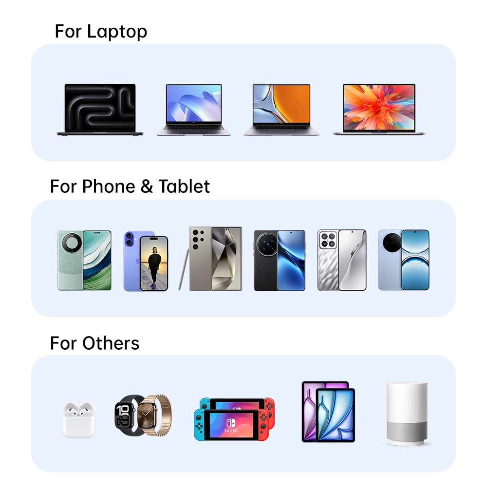 สำหรับแล็ปท็อป/แท็บเล็ต/โทรศัพท์/หูฟัง/สมาร์ทวอท์ช/เครื่องเล่นเกม |