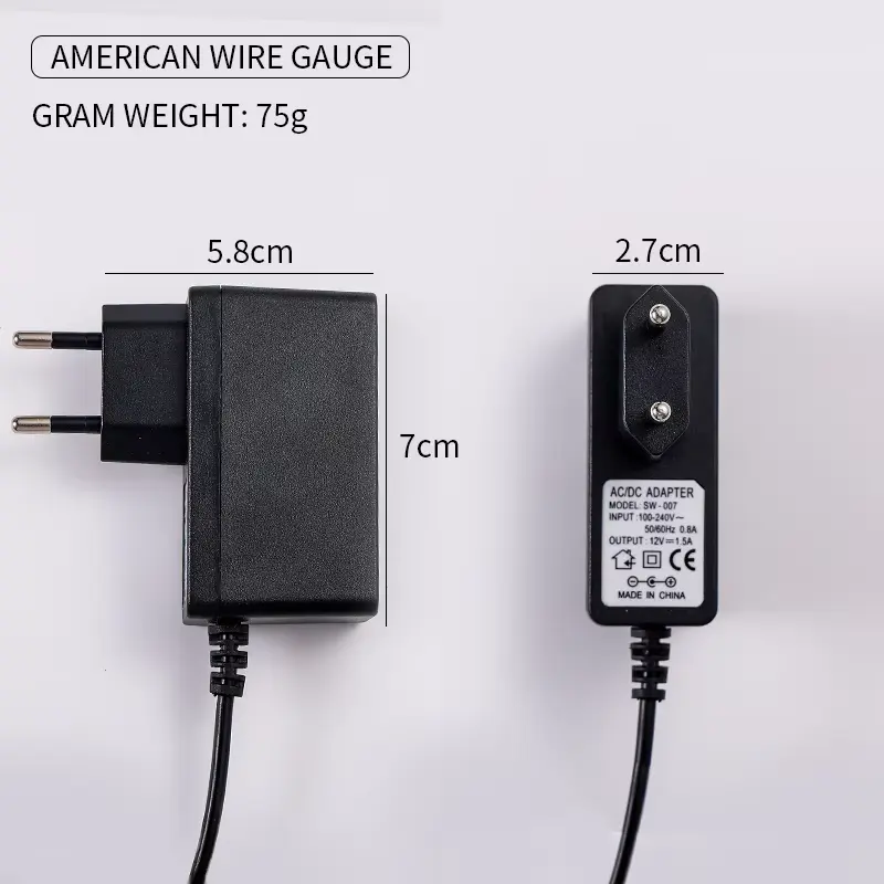 ข้อมูลจำเพาะของอะแดปเตอร์แปลงไฟแบบติดผนัง Starwell 12v 1.5a: